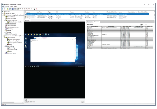 Expand your evidence base for security incident investigations and simplify the detection of access privilege misuse by recording user activity based on system state, or DLP policy violations. Record the user’s computer screen together with on-screen actions, keystrokes, and information about applications that were used on the computer during recording, and store it in a central DLP log database for analysis.